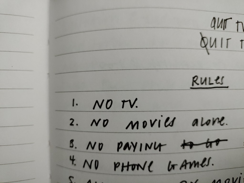 Days since TV Ban: 3 Television watched: 0 hrs Confidence that I can do this: 41% (Which is equal to the amount of people in the USA who talk to the person they’re with at dinnertime over watching television.) Dinnertime is the antithesis of my work day. Instead of sitting upright in an ergonomic desk